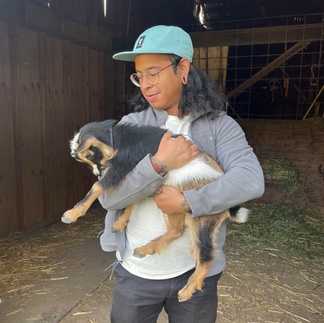 Graduate students Diana Munoz, Anderson Tate, and Carlos Esperanza spent the day at Doodad Ranch in Elverta, California with two main goals: obtain a genetic sample of a Western bluebird, and hang out with baby goats!